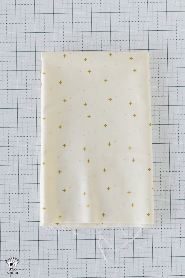 A 1/2 yard cut of Vintage White Sparkler fabric by Riley Blake Designs. The fabric is off-white with metallic gold accents.
