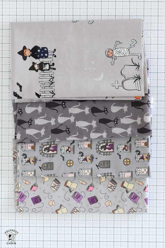 Gray Halloween Fabrics Bundle; Four Half Yard Cuts