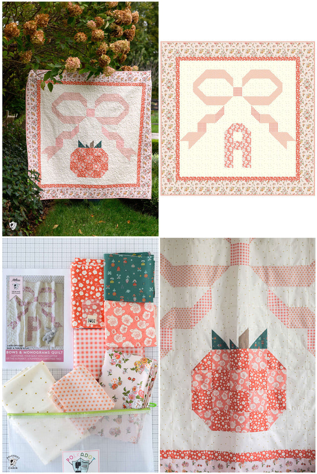 Add a touch of “pretty fall” charm to your home with the Bows & Monograms quilt kit. This seasonal design features a sweet pumpkin block paired with a classic bow, adding an elegant twist to autumn décor.
